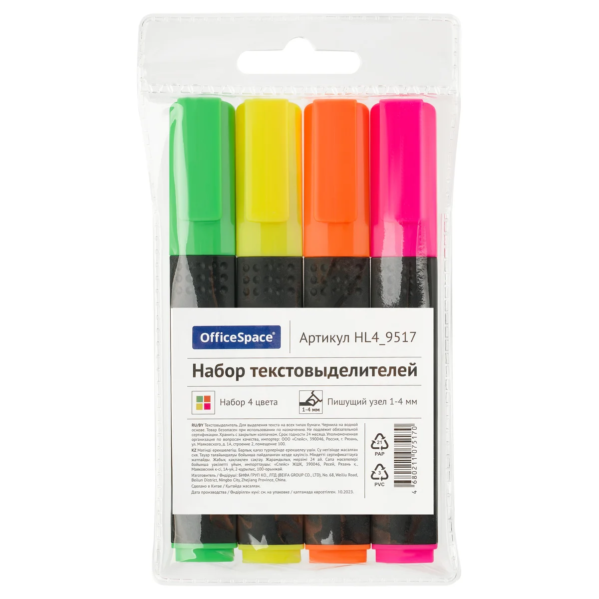 Набор текстовыделителей Officespace набор 4 цвета, 1-4мм, скошенный наконечник