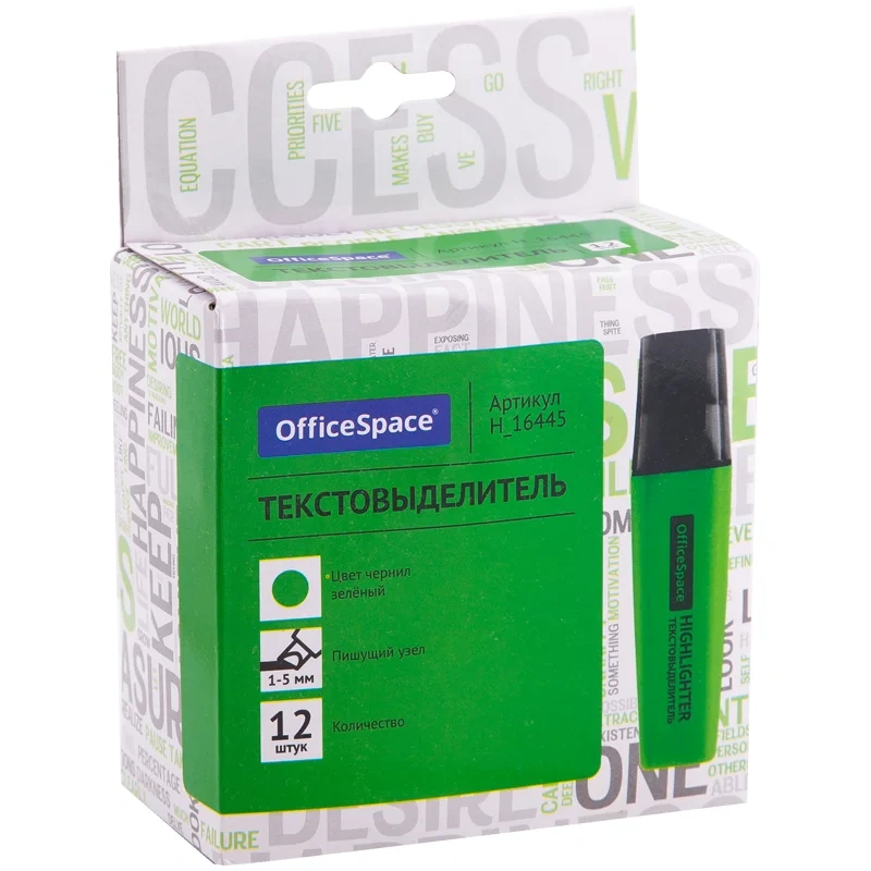 Текстовыделитель Officespace зеленый, 1-5мм, скошенный наконечник, H16445
