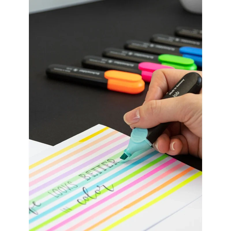 Универсальный текстовыделитель для различных типов бумаги. Скошенный наконечник позволяет проводить линии шириной 1-2 или 5 мм. Светостойкие чернила нежного пастельного цвета для самого важного в тексте.