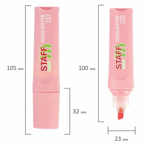 Текстовыделитель пастельного розового цвета обладает прямоугольной формой корпуса диаметром 24 мм. Корпус оснащен удобной зоной захвата. Изделие не перезаправляется и относится к товару эконом-сегмента, что обеспечивает привлекательную цену. Товар обладает базовым набором характеристик и простой упаковкой, полностью соответствуя основным требованиям потребителей.