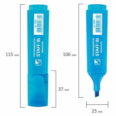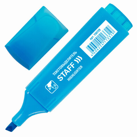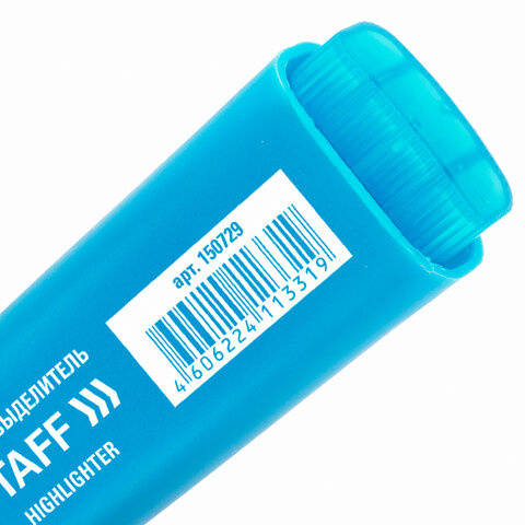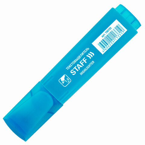 Текстовыделитель голубого цвета обладает плоской формой корпуса диаметром 25 мм. Скошенный наконечник имеет толщину линии письма от 1 до 5 мм, что обеспечивает удобство при работе с текстом, напечатанным мелким шрифтом, или таблицами. Текстовыделитель обладает экономным расходом чернил. Чернила на водной основе не размазываются в процессе использования. Изделие не перезаправляется. Колпачок с клипом и соответствует цвету чернил.
