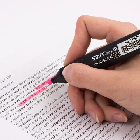 Скошенный наконечник имеет толщину линии письма от 1 до 4 мм, что обеспечивает удобство при работе с текстом, напечатанным мелким шрифтом, или таблицами. Текстовыделитель обладает экономным расходом чернил. Светоустойчивые чернила на водной основе не выцветают даже на открытом солнце и не размазываются в процессе использования.
