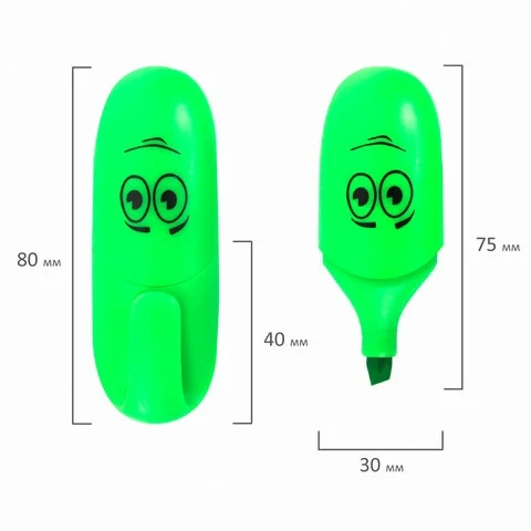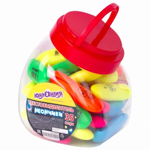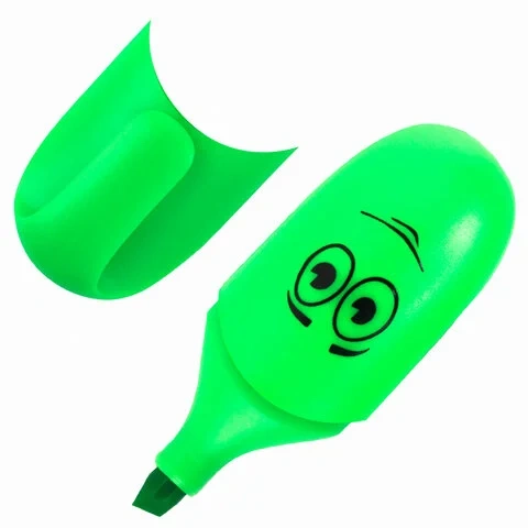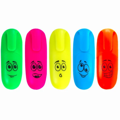 Текстовыделители неоновых цветов: желтый, зеленый, розовый, оранжевый, голубой, имеют овальную форму корпуса, диаметр которого 30 мм. Скошенный наконечник имеет толщину линии письма от 1 до 5 мм, что обеспечивает удобство при работе с текстом, напечатанным мелким шрифтом, или таблицами. Благодаря особой водной основе чернил текстовыделитель не высыхает без колпачка в течение 8 часов. Текстовыделитель обладает экономным расходом чернил, при этом длина линии письма достигает 300 метров. Чернила быстро впитываются и тем самым предотвращают размазывание в процессе использования. Цвет колпачка и корпуса текстовыделителя соответствует цвету чернил.
