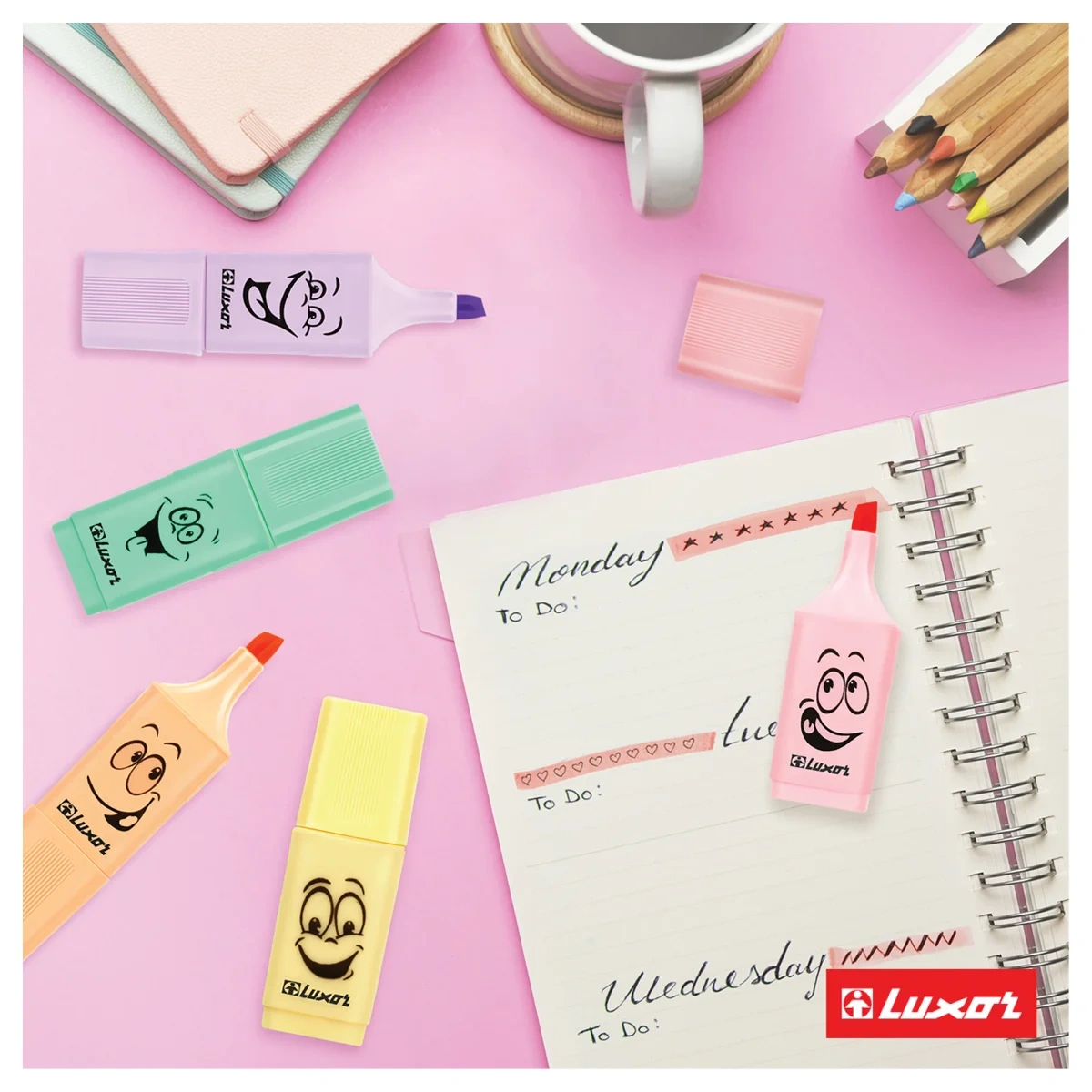 Текстовыделитель Luxor Eyeliter Pastel на водной основе представлен со скошенным пишущим узлом. Компактный размер 24*14,7 мм идеально подходит для пенала или сумочки. Пастельные чернила уменьшают нагрузку на зрение, не затемняют текст и подходят для выделения, эскизов, надписей. Текстовыделители нежно выделяют, быстро сохнут и не оставляют разводов и имеют привлекательный дизайн.