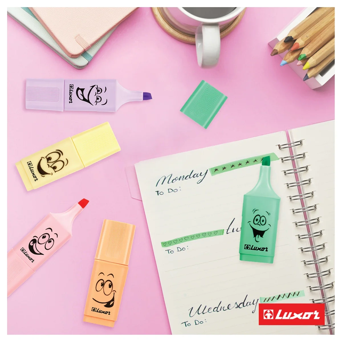 Текстовыделитель Luxor Eyeliter Pastel на водной основе представлен со скошенным пишущим узлом. Компактный размер 24*14,7 мм идеально подходит для пенала или сумочки. Пастельные чернила уменьшают нагрузку на зрение, не затемняют текст и подходят для выделения, эскизов, надписей. Текстовыделители нежно выделяют, быстро сохнут и не оставляют разводов и имеют привлекательный дизайн.
