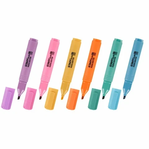 Набор текстовыделителей 6 ПАСТЕЛЬНЫХ ЦВЕТОВ, АССОРТИ, STAFF College 'STICK PASTEL', линия письма 1-4