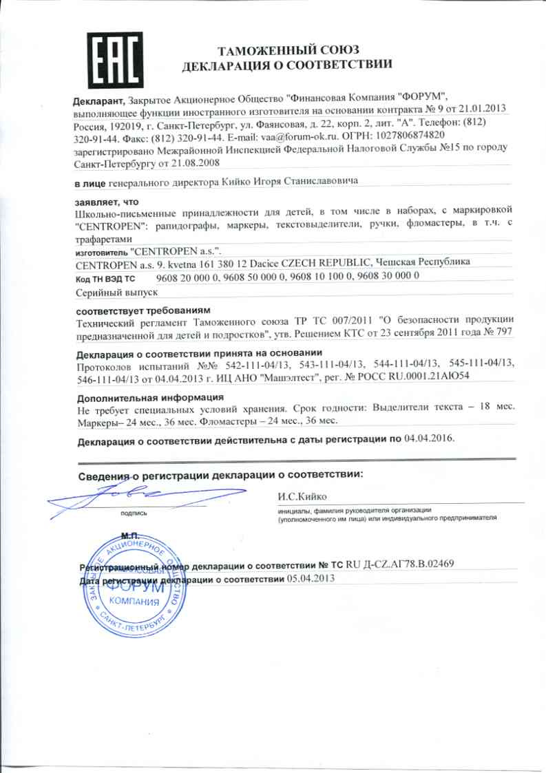 Фломастеры для рисования Centropen Colour World 24 цвета, смываемые