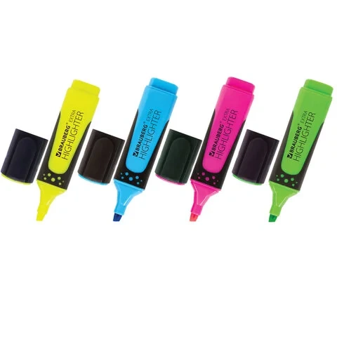 Набор текстовыделителей BRAUBERG 4 шт., АССОРТИ, 'SUPER', прорезиненный корпус, линия 1-5 мм, 151746
