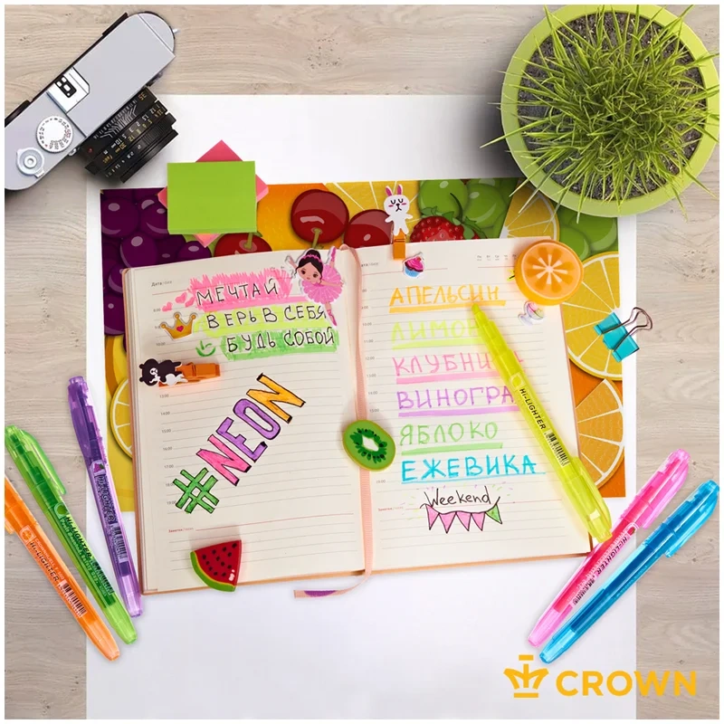 Набор текстовыделителей Crown 'Multi Hi-Lighter Aroma' - шесть вкусных ароматизированных неоновых ц...