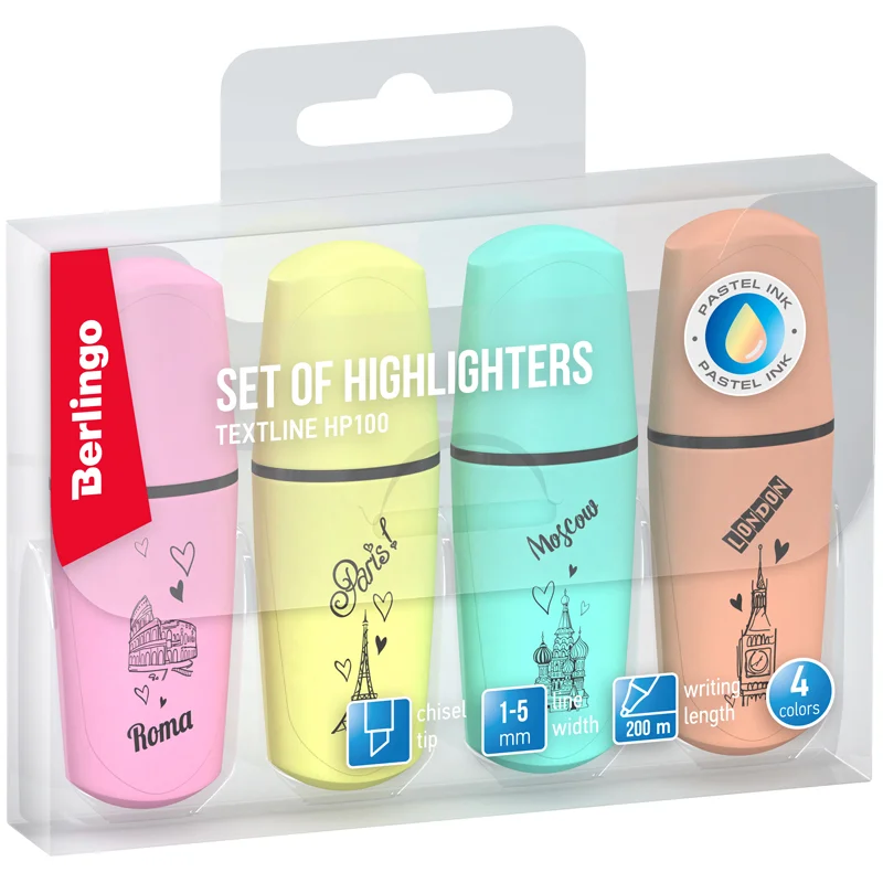 Набор текстовыделителей Berlingo 'Textline HP100' мини, 04цв., 1-5мм, пастельные цвета, европодвес