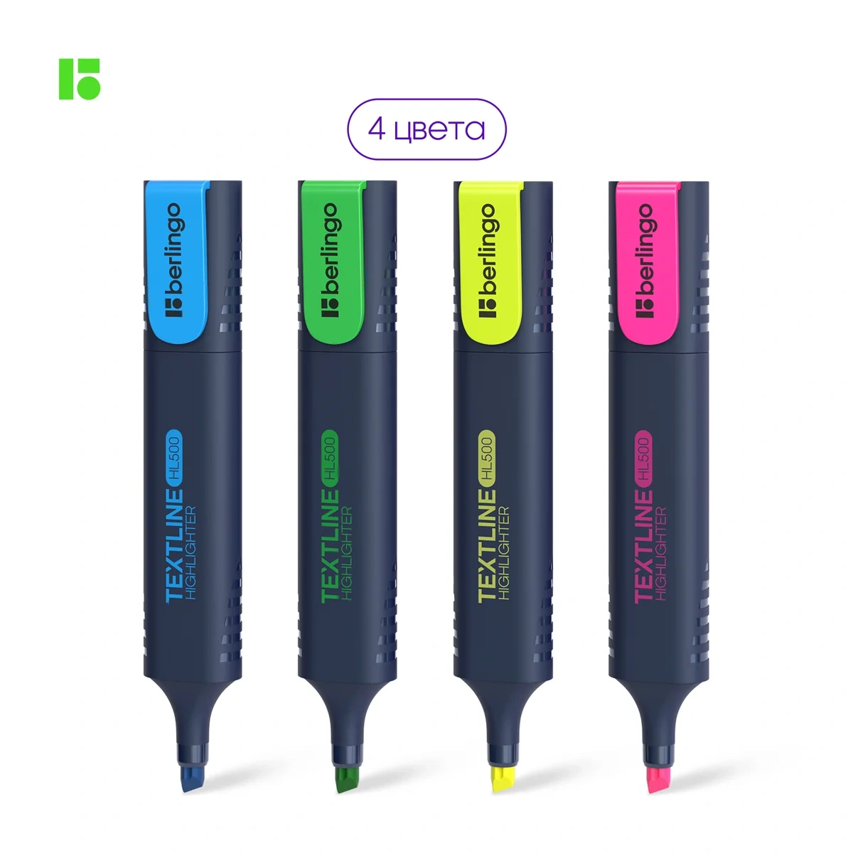Текстовыделитель Berlingo набор 4 цвета, 1-5мм, скошенный наконечник