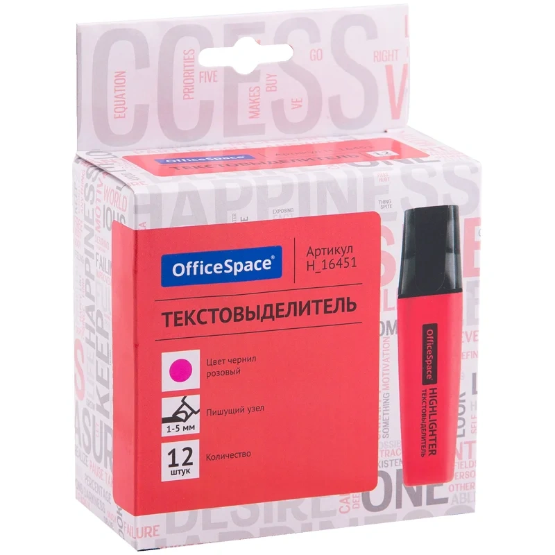 Текстовыделитель Officespace розовый, 1-5мм, скошенный наконечник, H16451