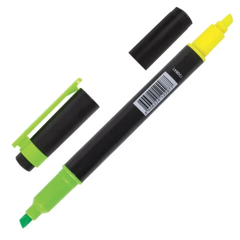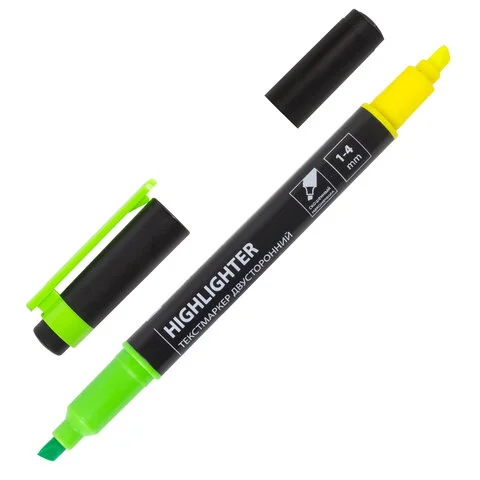 Текстовыделитель Brauberg лимонный/зеленый, 1-4мм, скошенный наконечник, двухсторонний