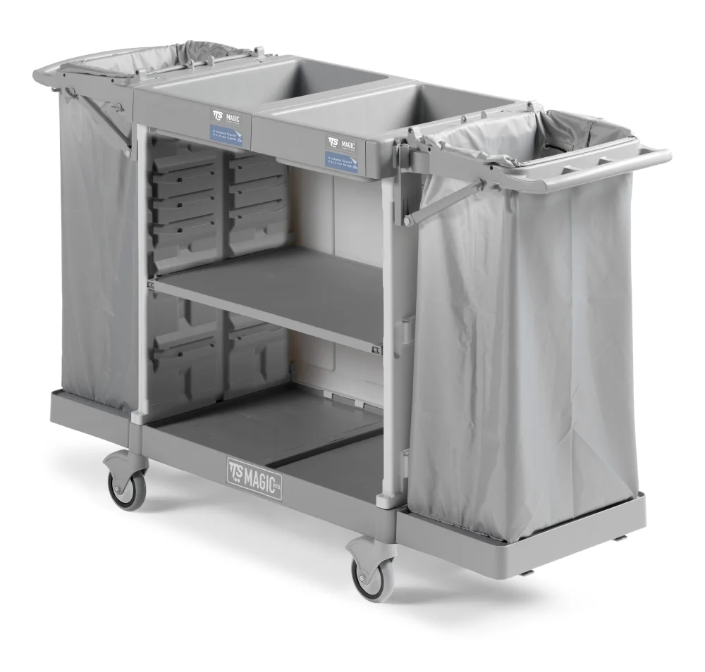 Тележка для отелей серии MAGIC HOTEL 890B с полкой для белья TTS, обслуживает 8/10 комнат, мешки н