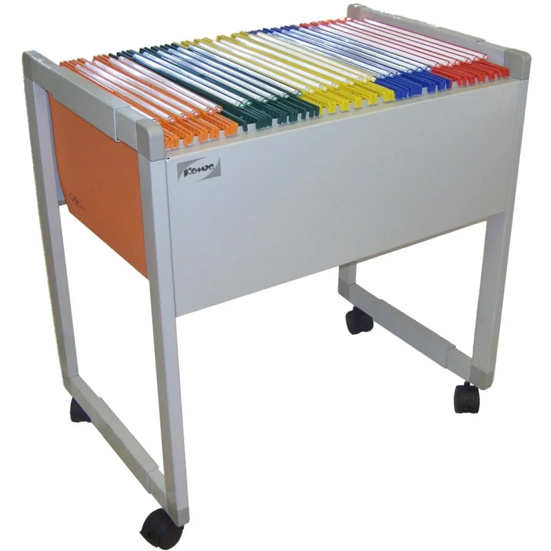 Тележка для подвесных папок Комус выполнена в виде тележки с роликами для удобного перемещения. Материал — сталь с износоустойчивым покрытием белого цвета. Вмещает до 80 подвесных папок формата А4 (в комплект не входят). Фронтальную стенку можно выдвигать для использования папок формата Foolscap (240×370 мм). Подходит для хранения документов частого использования. Общая высота 700 мм, колесо — 65 мм, тележка — 635 мм.