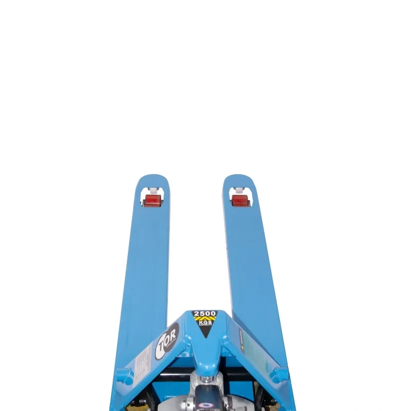 Тележка гидравлическая Tor RHP(BF). Данная модификация тележки RHP поставляется с усиленными по все длине вилами. Усиленные вилы значительно увеличивают срок службы тележки. Если вы постоянно работаете с тяжелыми грузами, то выбрать стоит эту тележку. Грузоподъемностью 2,5 тонны — для обработки грузов на стандартных евро паллетах. Износостойкие полиуретановые колеса увеличивают срок эксплуатации тележки до замены колес.