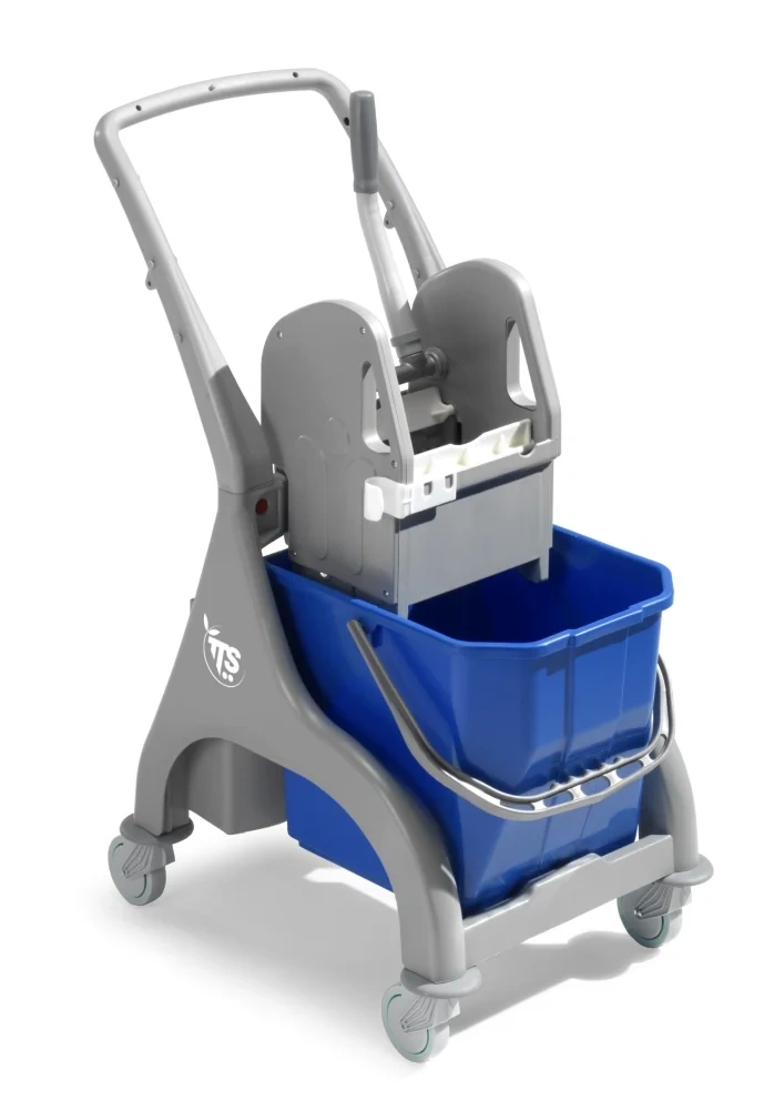 Тележка с рукояткой в форме 'U', окрашенный каркас и отжимной ролик Tec, синяя емкость и колеса диаметром o 80 мм с буферами