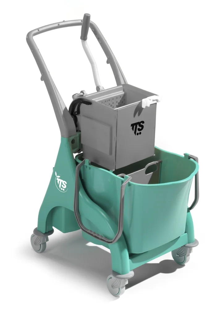 Тележка Nick28 TTS, 28 л ведро с разделителем, с U-образной ручкой, отжим Океу, пластик, зел., 0P