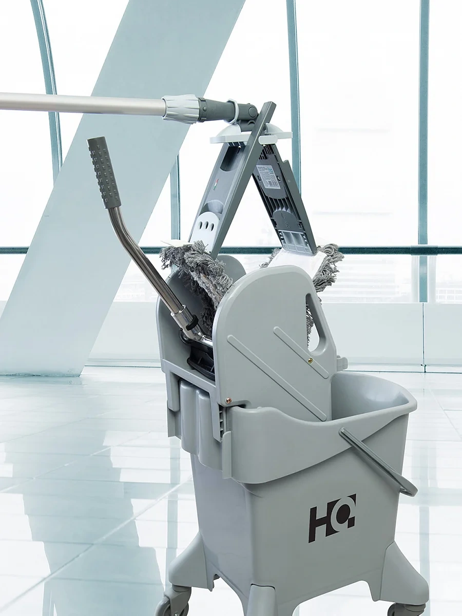 * Ведро на колёсиках, что позволяет легко перемещать его по объекту