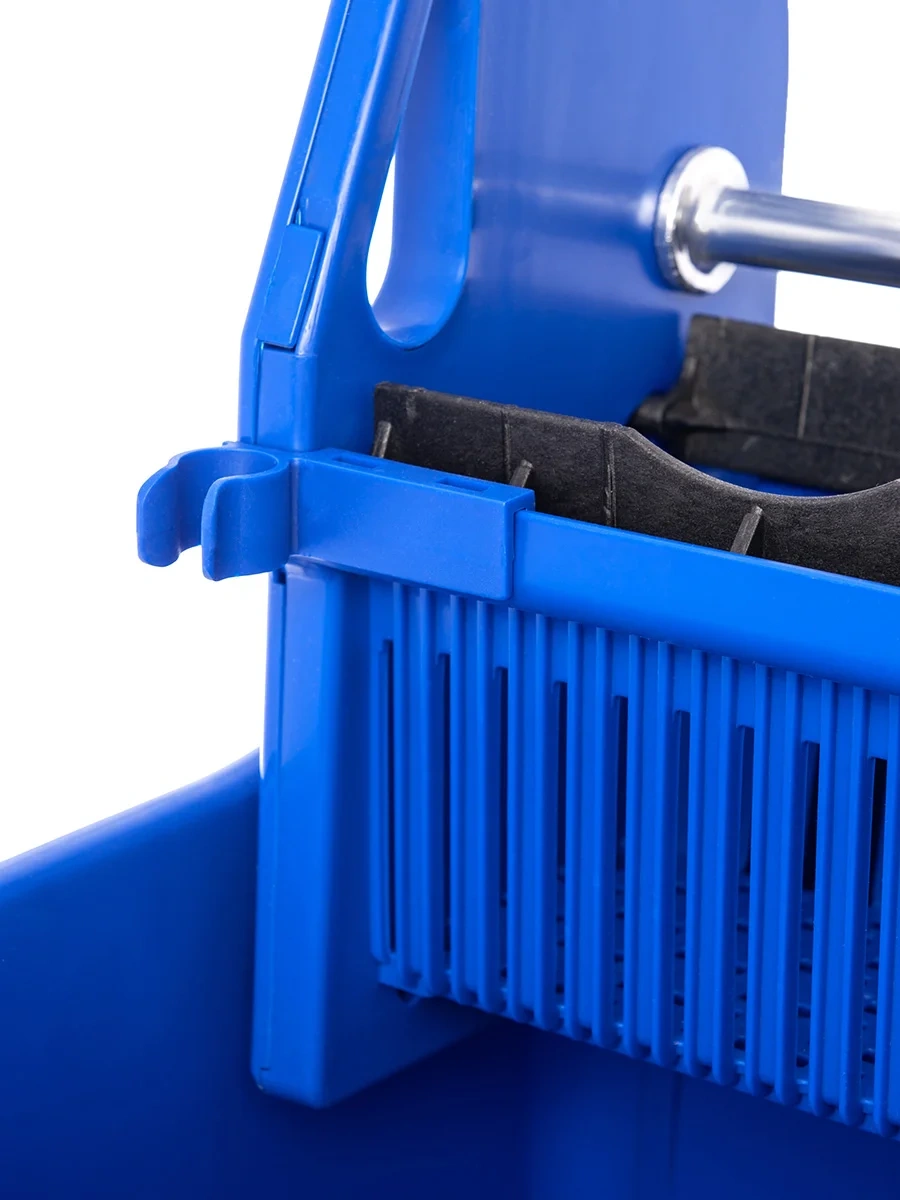 Ведро предназначено для профессиональной и быстрой уборки малых и средних помещений. Универсальный отжим позволяет минимизировать контакт рук с мопом, снизить нагрузку с рук при отжиме, использовать различные системы уборки (плоские мопы с креплениями карман и/или язык, мопы кентукки, резьбовые мопы). Рукоятка отжима выполняет функцию транспортировочной ручки, с помощью которой тележку удобно перемещать по помещению во время уборки. Компактный размер позволяет эргономично хранить ведро в перерывах между сменами. Устойчивость к растворам кислот и щелочей, дезинфектантов, используемых во время уборки позволяет замачивать мопы прямо в ведре до следующей уборки. Ударопрочный пластик выдержит ненамеренные столкновения ведра с мебелью и углами.