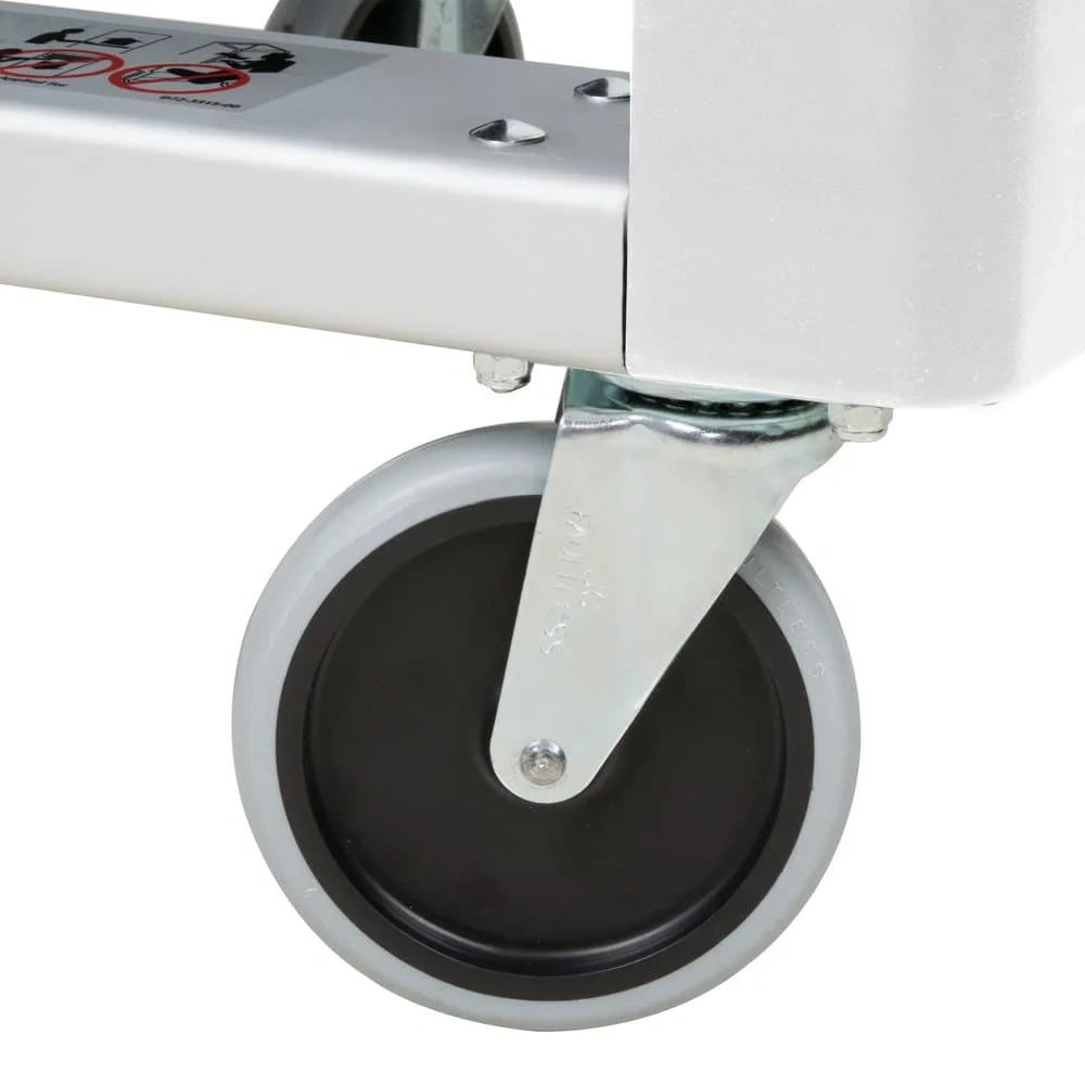 Оборудованна двумя фиксируемыми и двумя не фиксируемыми, не оставляющими следов поворотными колесами.