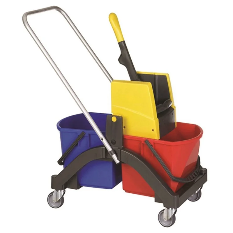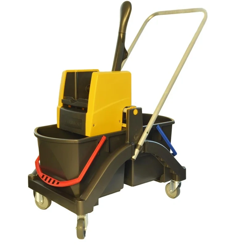 В комплект входит пластиковая база, 2 ведра по 17 л (синее и красное или антрацит), отжим VK4 (желтый), с перекидной ручкой. Благодаря большим поворотным роликам, тележкой Vermop Aqua очень легко маневрировать.