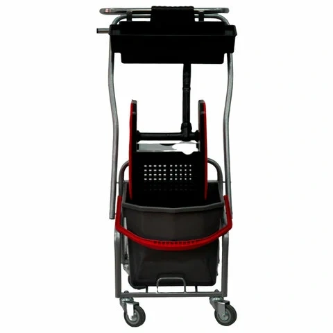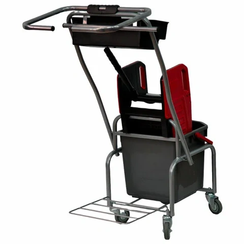 Она идеально подходит для работы на малых площадях и в условиях ограниченного пространства. Прочная конструкция и устойчивость тележки экономят время, значительно упрощают уборку и делают ее более качественной и профессиональной.