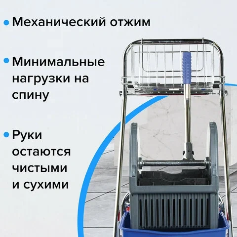 Тележка уборочная Brabix Professional двухведерная, 2х15л, 6 предметов
