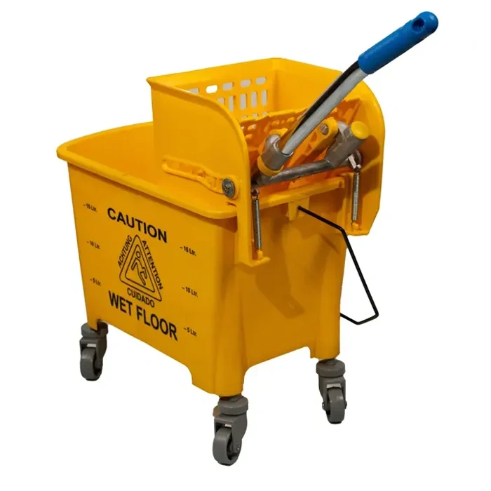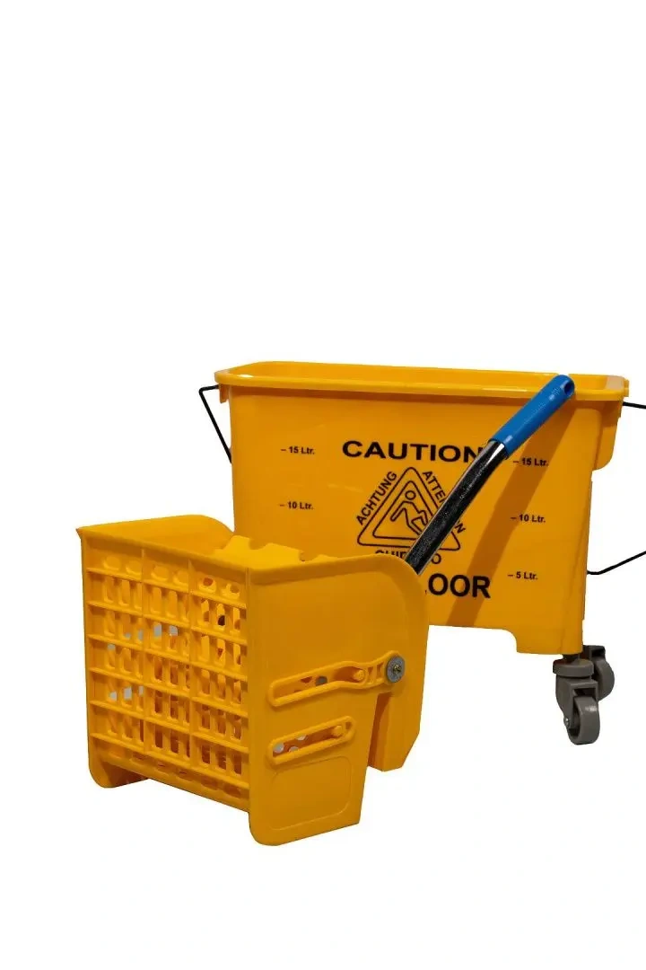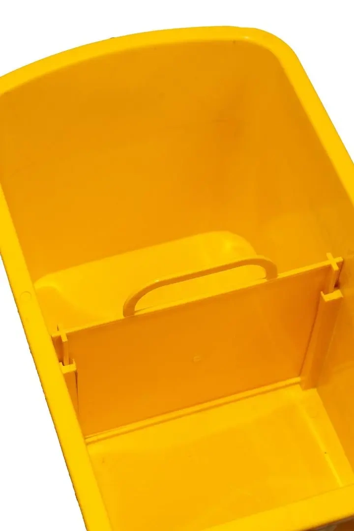 Ведро на колесах оснащено съёмным механическим отжимом для плоских мопов. Ведро отлито из прочного пластика оснащено металлической ручкой для переноски.Объем 20 литров.Размер: Д – 44 см, Ш – 26,5 см, В – 62 смЦвет: ЖелтыйМатериал: пластикВес: 3,8 кг