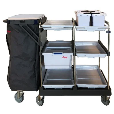 Vileda Professional.Тележка для горничных Оргиго, база.Размеры 1000*580*1370. Комплект предназначен для уборки помещений методом предварительной подготовки мягкого уборочного инвентаря от 600м2, сбора мусора, а также размещения / транспортировки расходных материалов и сменных комплектов белья для номерного фонда.