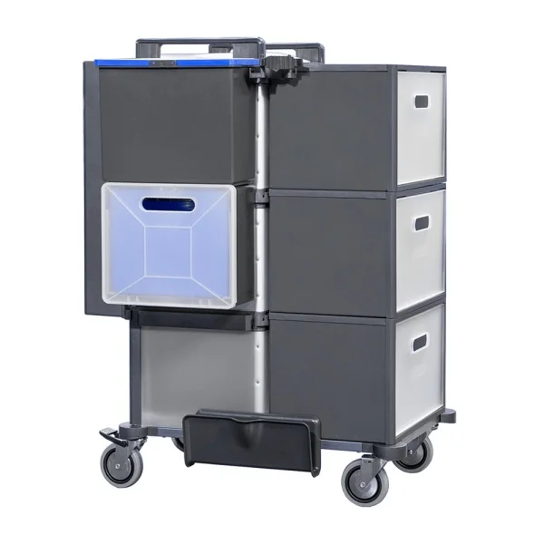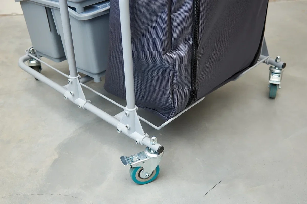 База тележки Шопстер с отсеком для сбора мусора и мопов (2x35 л или 1x70 л) и хранением расходников, 4 колеса с 2 тормозами, 2 транспортировочные ручки, 4 бампера