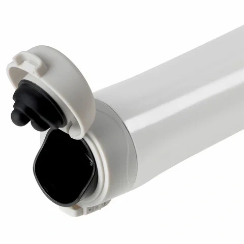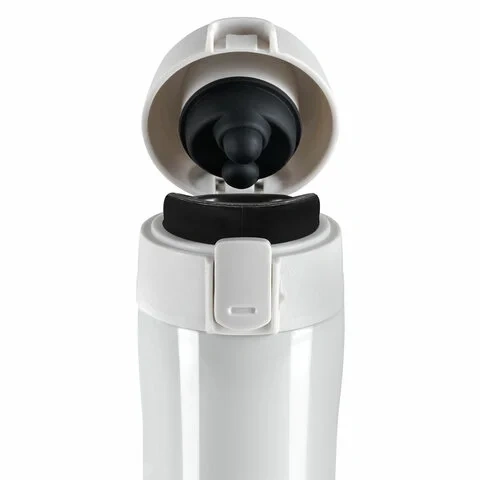 Кружка снабжена откидывающейся крышкой с кнопкой, позволяющей с легкостью использовать ее одной рукой. Для защиты от непроизвольного нажатия кнопки предусмотрен специальный защитный замок-предохранитель.