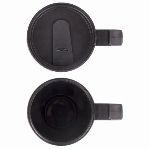 Кружка снабжена откидывающейся крышкой с кнопкой, позволяющей с легкостью использовать ее одной рукой. Для защиты от непроизвольного нажатия кнопки предусмотрен специальный защитный замок-предохранитель.