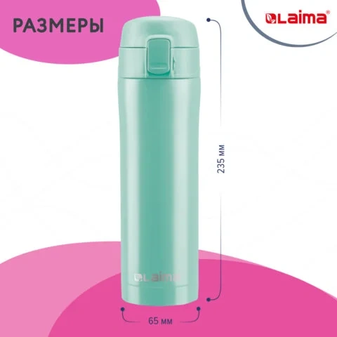 Термокружка 470 мл из нержавеющей стали SUS304, сочно-мятный матовый, LAIMA, 608826