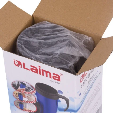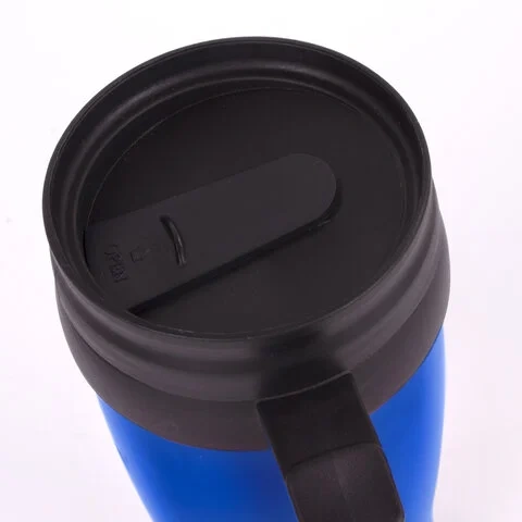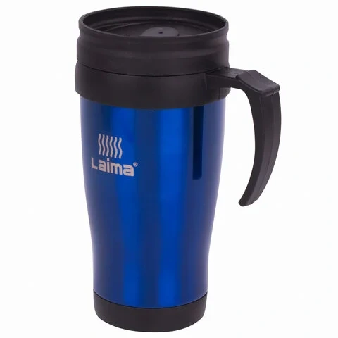 Термокружка Laima 400мл, синяя, пластиковая ручка, нержавеющая сталь