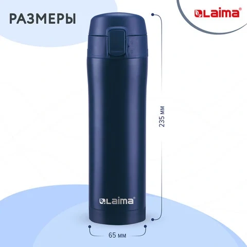Отзывы о «Термокружка с двойной стенкой из нержавеющей стали, 470 мл, цвет королевский синий, LAIMA, 608079»