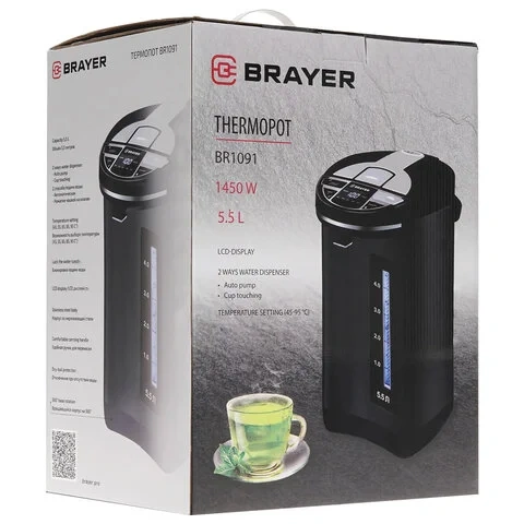 Термопот на 5,5 литров, 2 режима подачи воды, BRAYER BR1091, 1450 Вт, 5 температурных режимов
