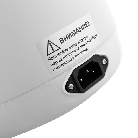 При отсутствии воды в баке срабатывает автоматическая блокировка. Конструкция дополнена индикатором активированного режима, возможностью вращения на 360°, удобной шкалой уровня воды и прочной ручкой для переноски.