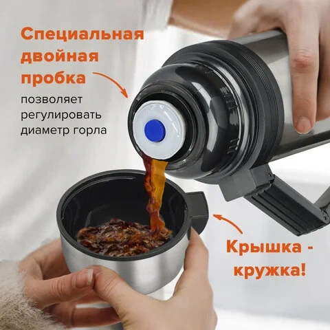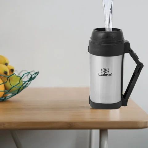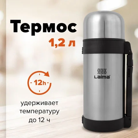 Термос Laima 1.2л, серебристый, нержавеющая сталь, с ручкой