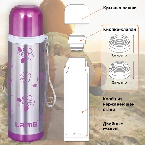 Термос с узким горлом Laima 500мл, нержавеющая сталь, с рисунком