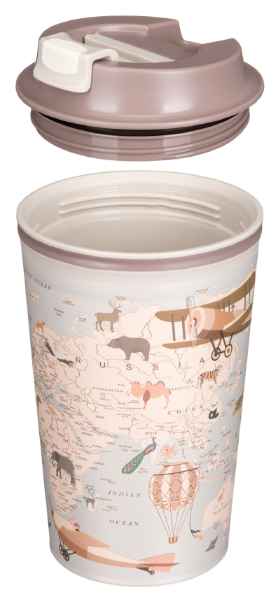 Термостакан Phibo Карта, 350мл состоит из двух пластиковых колб: внутренней и внешней. Воздушная прослойка между колбами обеспечивает сохранение температуры напитка, а также не позволяет внешней стенке стакана сильно нагреваться. Клапан надолго сохраняет напиток горячим и не дает ему расплескаться по пути.Предназначен для многоразового использования. В термостакане удобно брать горячие и холодные напитки с собой. Благодаря оптимальным габаритам, термостаканы идеально помещаются в автомобильный подстаканник и в боковой карман рюкзака. Изготавливаются из 100% перерабатываемого прочного безопасного полипропилена.Декор нанесен с помощью технологии IML, поэтому изображение не сотрется и не отклеится.
