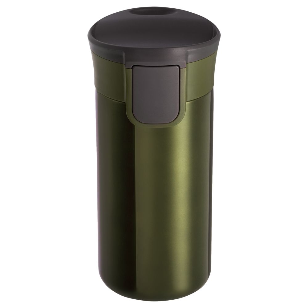 Емкость 300 мл. Двухслойная вакуумная конструкция из нержавеющей стали сохраняет напиток горячим не менее 3 часов, холодным — не менее 5 часов. Крышка полностью герметична — стакан можно переворачивать. Специальная герметичная система JustPushTheButton: чтобы открыть клапан для питья, нужно нажать и удерживать кнопку пальцем. Крышка EasyWash разборная, что облегчает ее мытье и чистку. Термостакан подходит для большинства автомобильных подстаканников. Из-за технологических особенностей процесса круговой гравировки нанесение встык не производится. Размер: высота 17,2 см; диаметр 7,3 см Материал: пластик, нержавеющая сталь Цвет: оливковый, зеленый