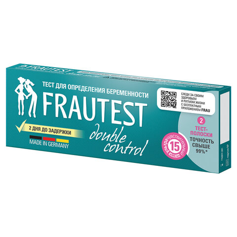 Тест медицинский Frautest Double Control на определение беременности, тест-полоска, 2шт