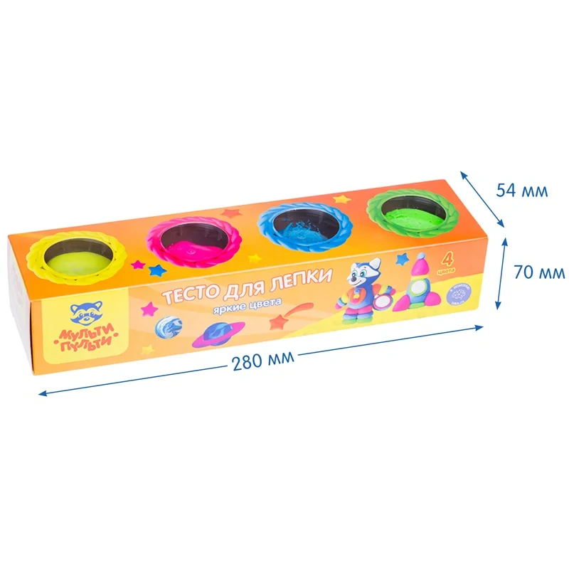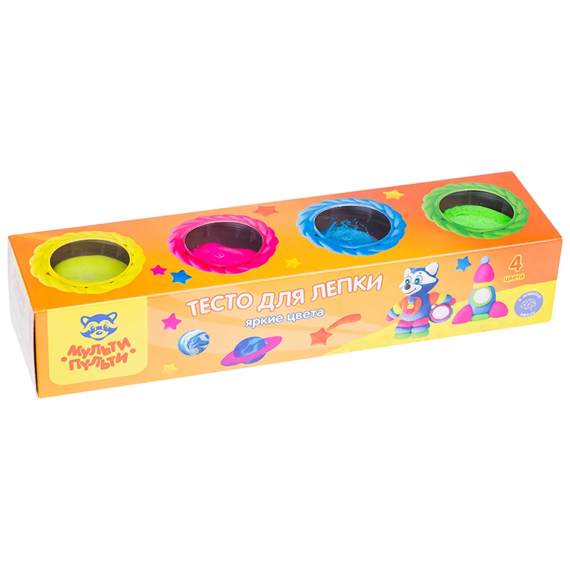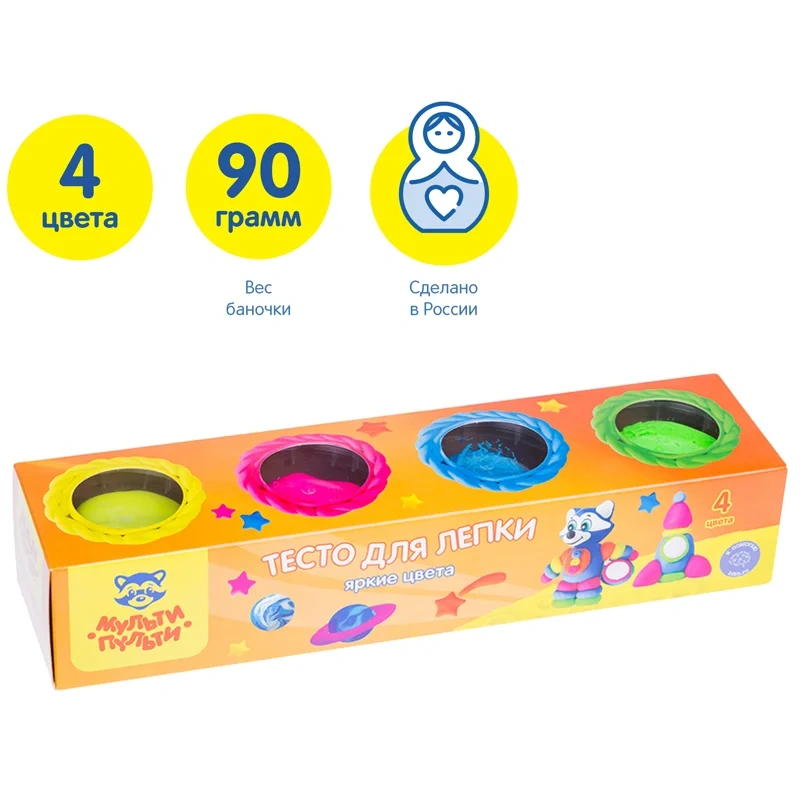 Тесто для лепки Мульти-Пульти Енот на Луне 4 цвета по 90г, яркие цвета