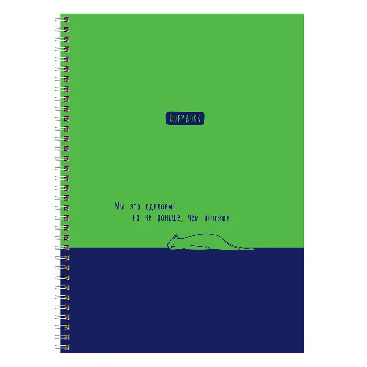 Тетрадь 100л., А4 клетка на гребне BG 'Лучше позже', матовая ламинация, твердая обложка