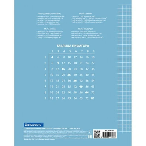 Тетрадь 12 л. BRAUBERG ЭКО '5-КА', клетка, обложка плотная мелованная бумага, СИНЯЯ, 104760
