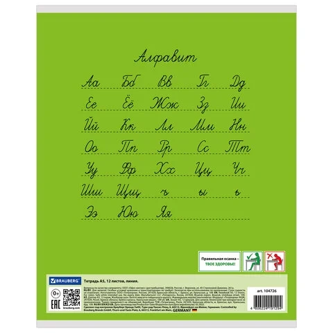 Тетрадь 12 л. BRAUBERG КЛАССИКА, линия, обложка картон, ЗЕЛЕНАЯ, 104726