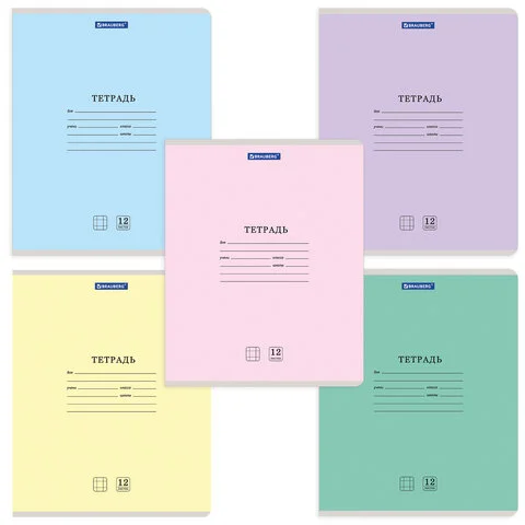 Тетрадь 12 л. BRAUBERG 'КЛАССИКА NEW', клетка, обложка картон, АССОРТИ (5 видов), 105682