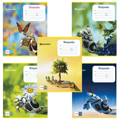 Тетрадь 12 л. BRAUBERG, линия, обложка картон, ГАЛАНТНЫЕ РОБОТЫ, 104780