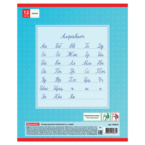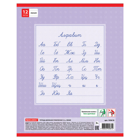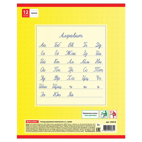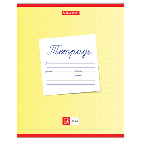 Тетрадь 12 л. BRAUBERG линия, обложка картон, 'ШКОЛЬНАЯ', 105618